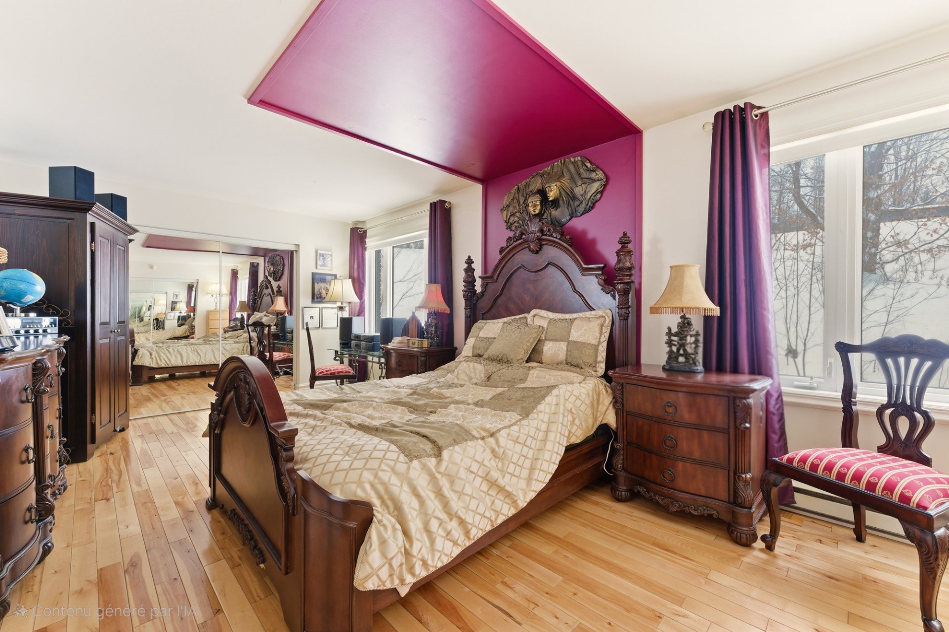Inclusions: Chandeliers, light fixtures, dishwasher, air exchanger, central vacuum cleaner, electric door opener, wall-mounted air conditioning, poles and curtains, blinds, alarm system + cameras
