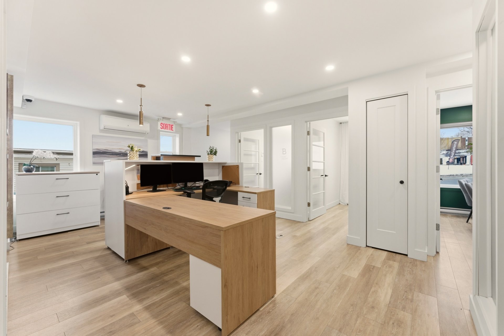 Located on King Street East, this mixed-use building offers a superb fully renovated and furnished commercial space on the ground floor as well as residential housing at the rear. Strategic location in Fleurimont, excellent visibility, easy parking and modern amenities. An ideal opportunity for an investor or professional wishing to occupy or rent the space while benefiting from a stable rental income.