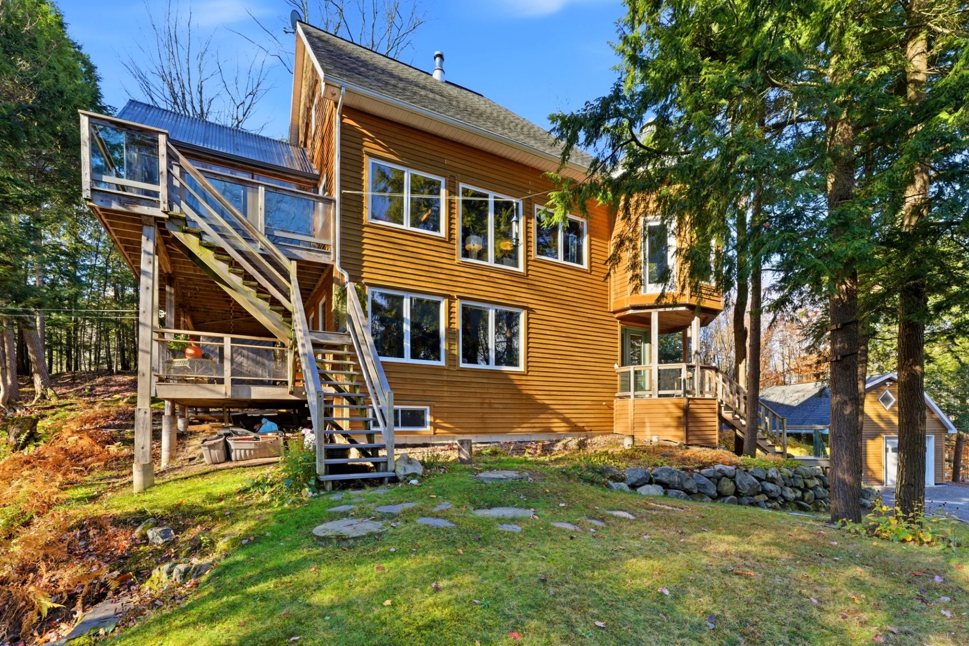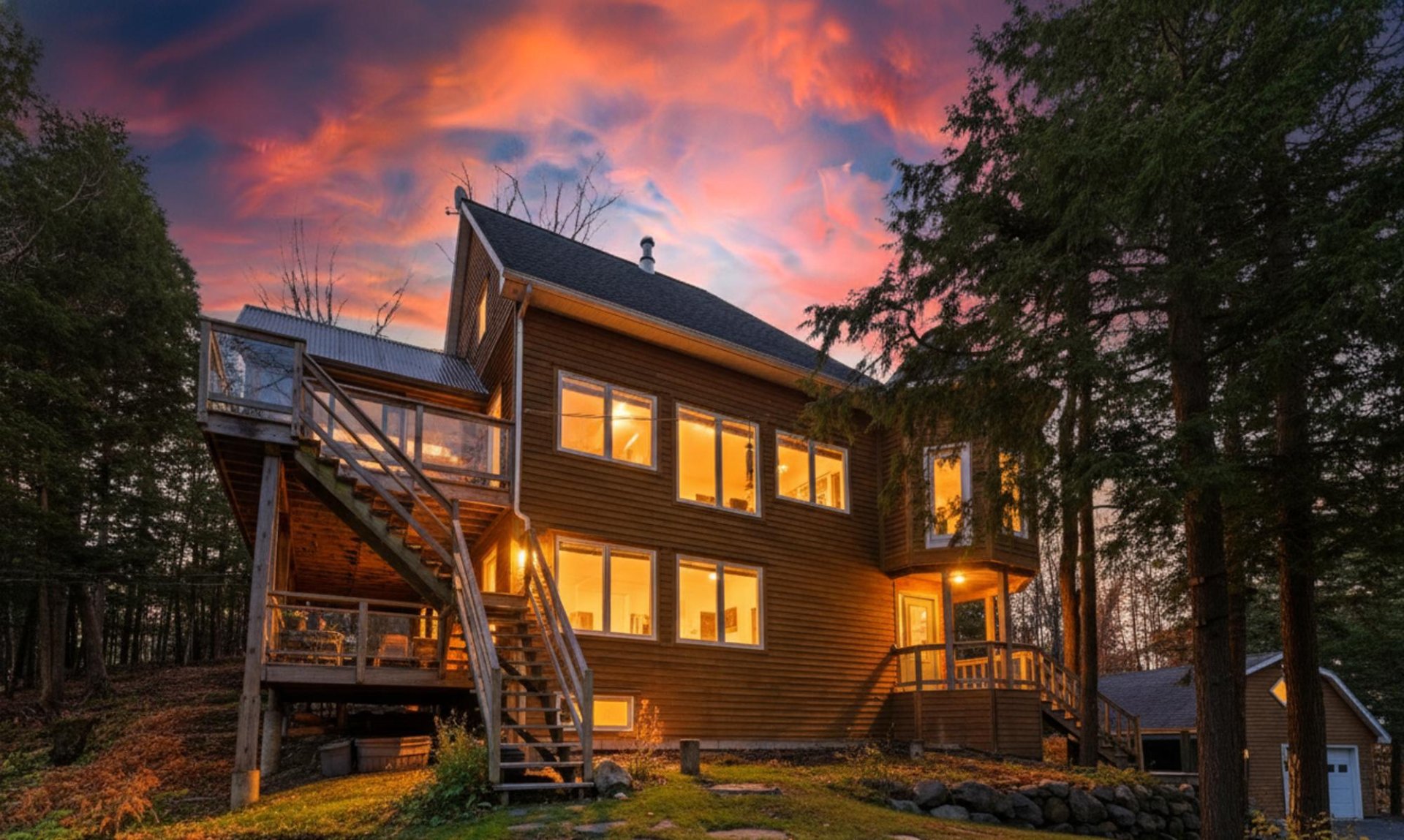 Propriété distinctive sur 3 étages offrant 3 chambres, 2 s. de bain et 1 s. d'eau. Terrain boisé de près de 3 acres procurant tranquillité et intimité. Garage simple détaché. Maison lumineuse avec véranda, magnifique cuisine et entretien impeccable. Accès direct aux sentiers du parc du Mont-Orford et au lac Brompton par la rue Thibault. Environnement exceptionnel alliant confort, espace et qualité de vie.