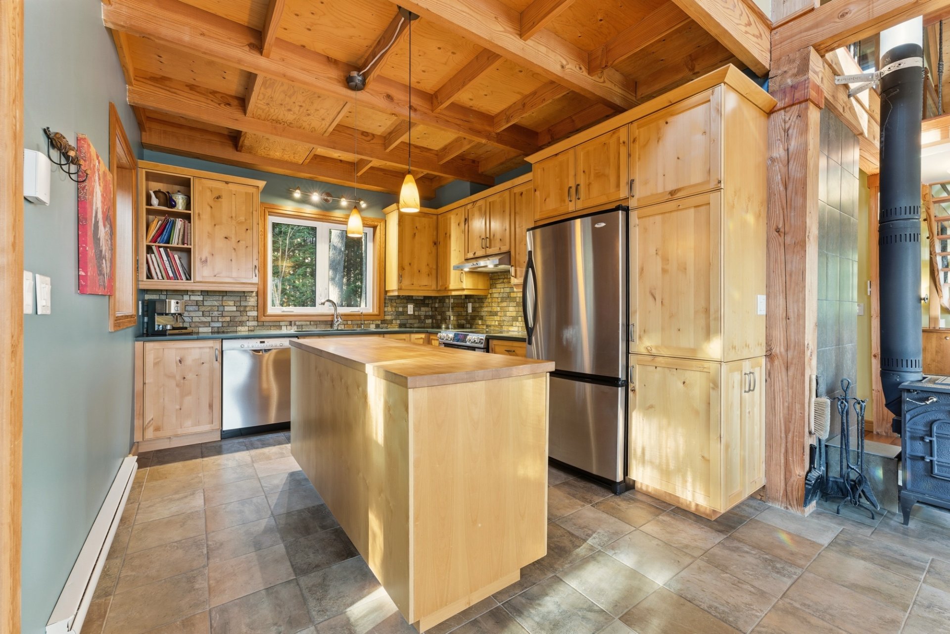 Lustres, luminaires, poêle combustion lente, frigo, lave-vaisselle, deuxième frigo dans le sous-sol, génératrice, ouvre porte électrique