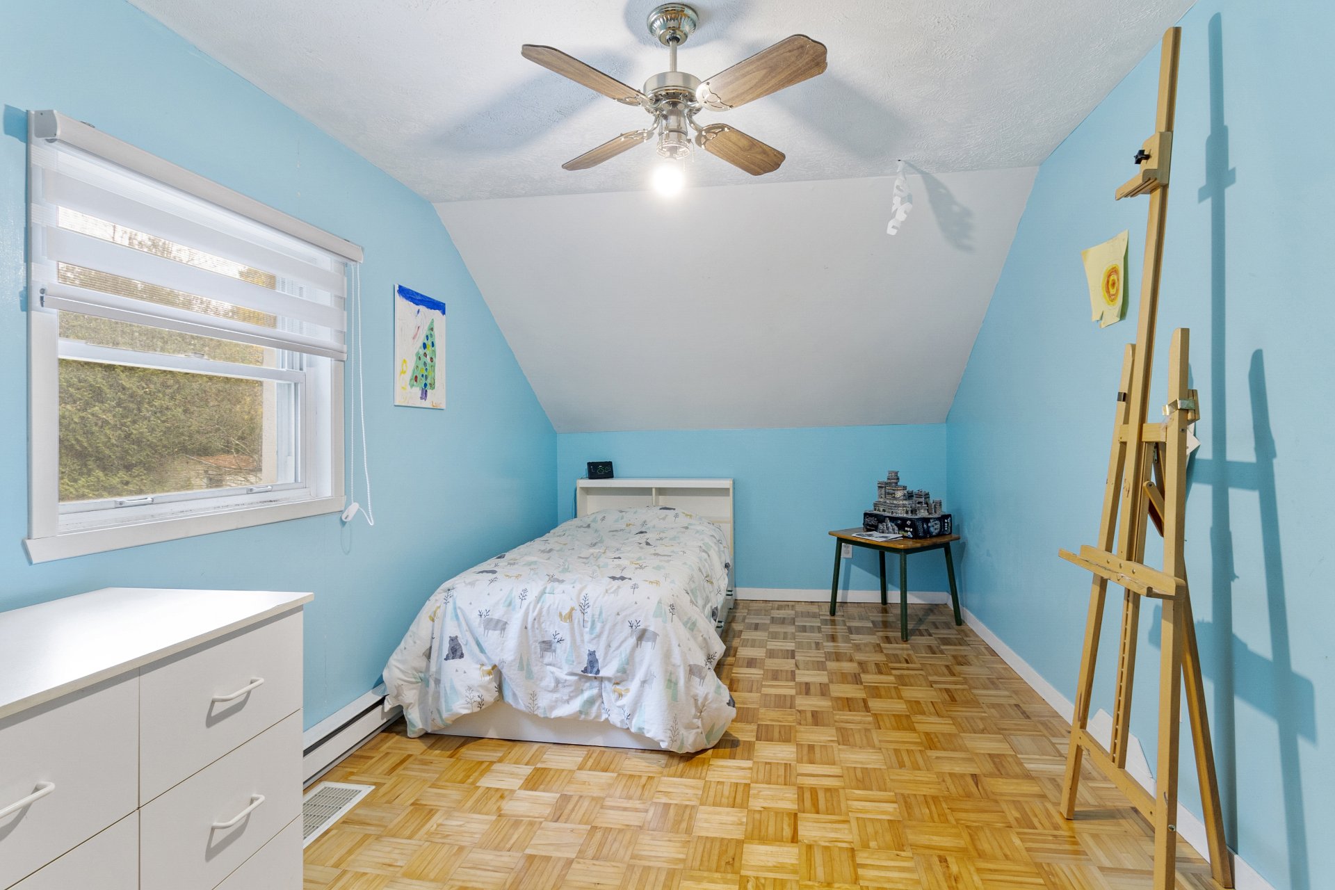 À l'étage, on y retrouve trois chambres à coucher, dont une