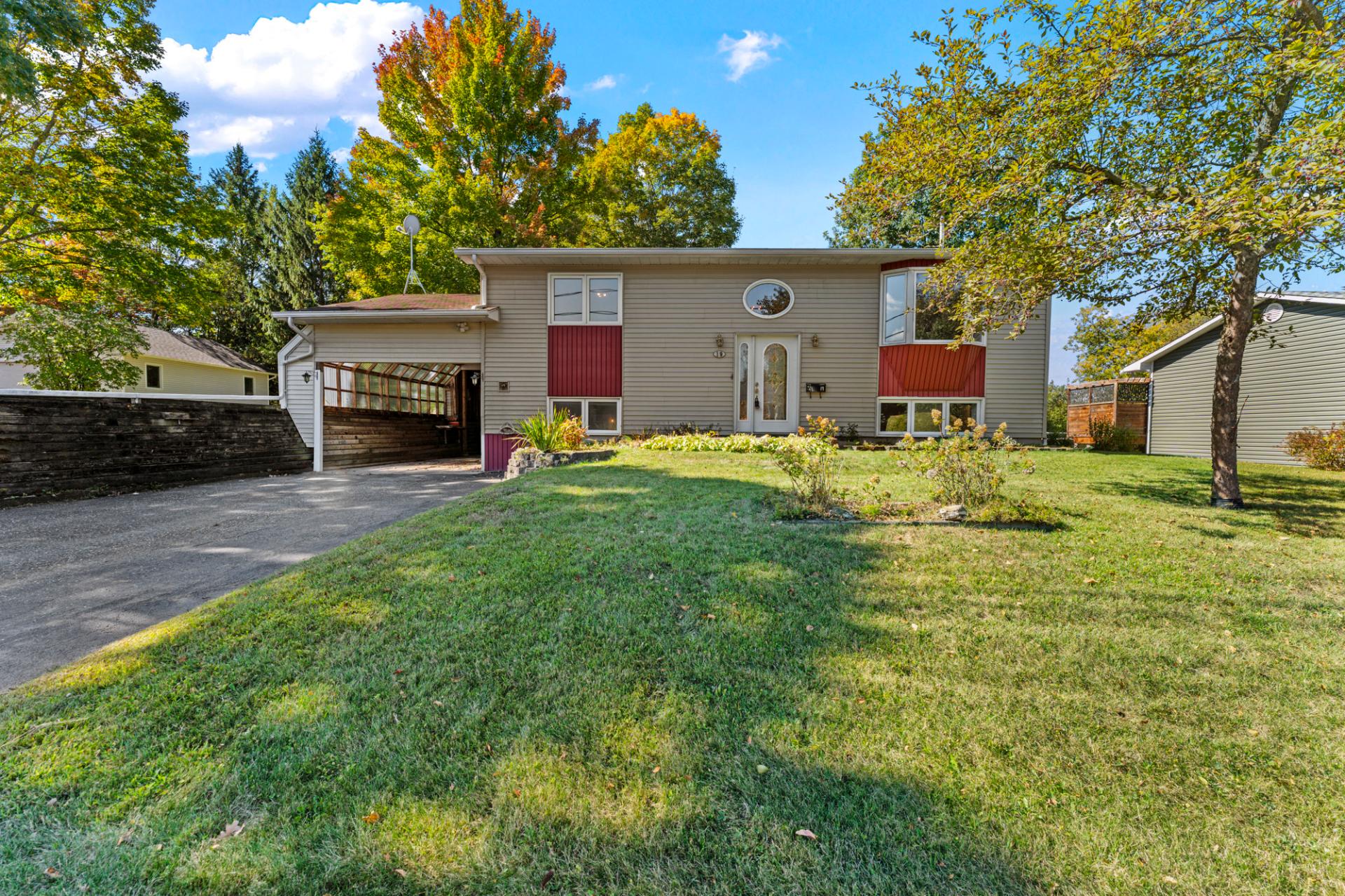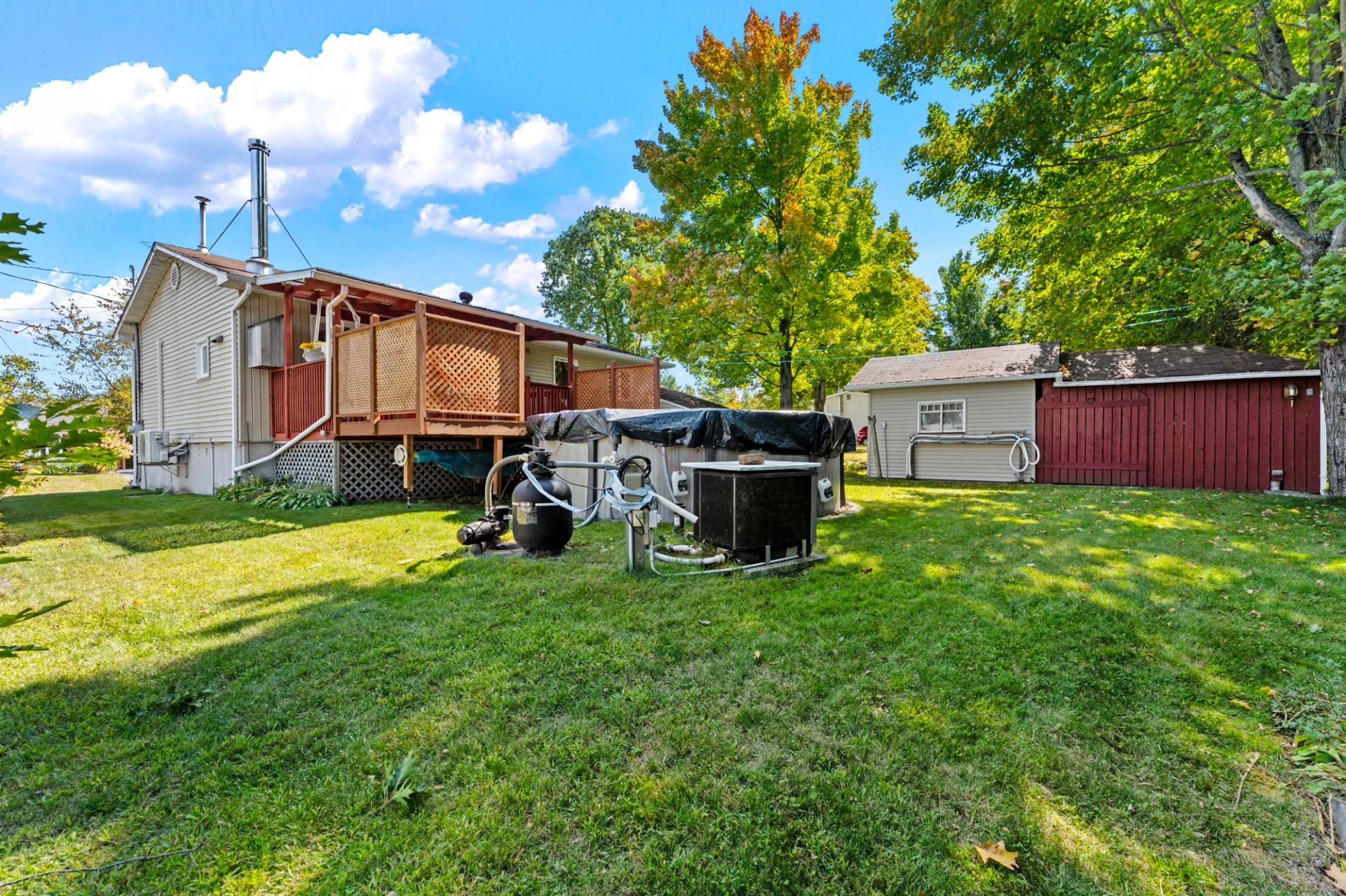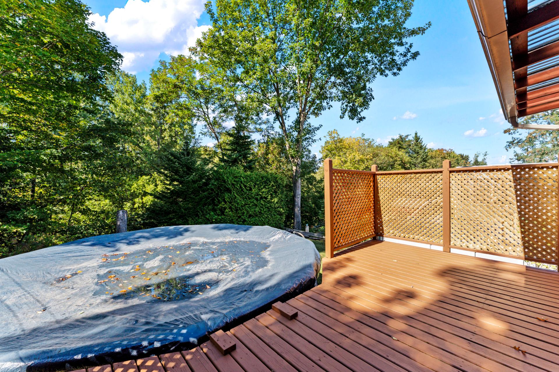 Cette propriété clé en main propose 3 chambres spacieuses et 2 salles de bain, dont une avec bain podium et vanité double. Vous profiterez d'une cuisine chaleureuse aux armoires de bois, d'un salon lumineux avec foyer et d'un sous-sol entièrement aménagé avec salle familiale. Profitez d'un extérieur exceptionnel avec terrasse couverte, piscine et terrain intime entouré d'arbres.
