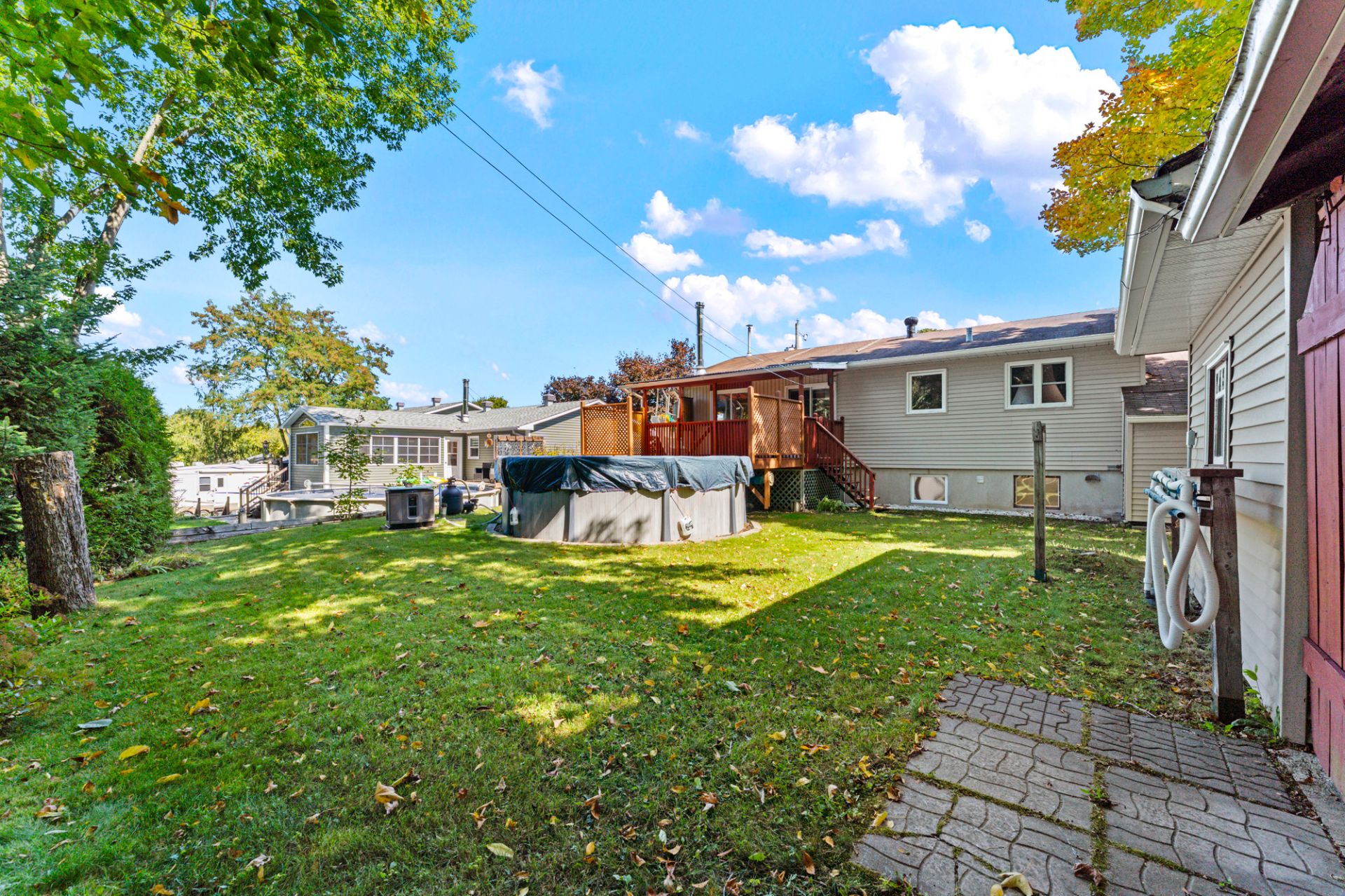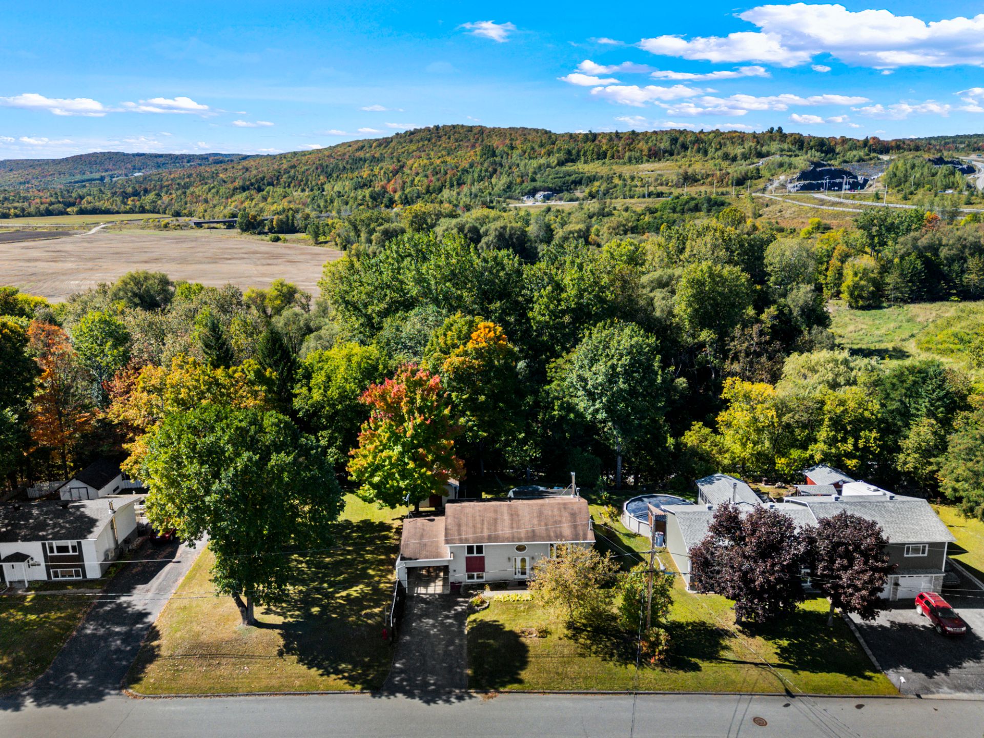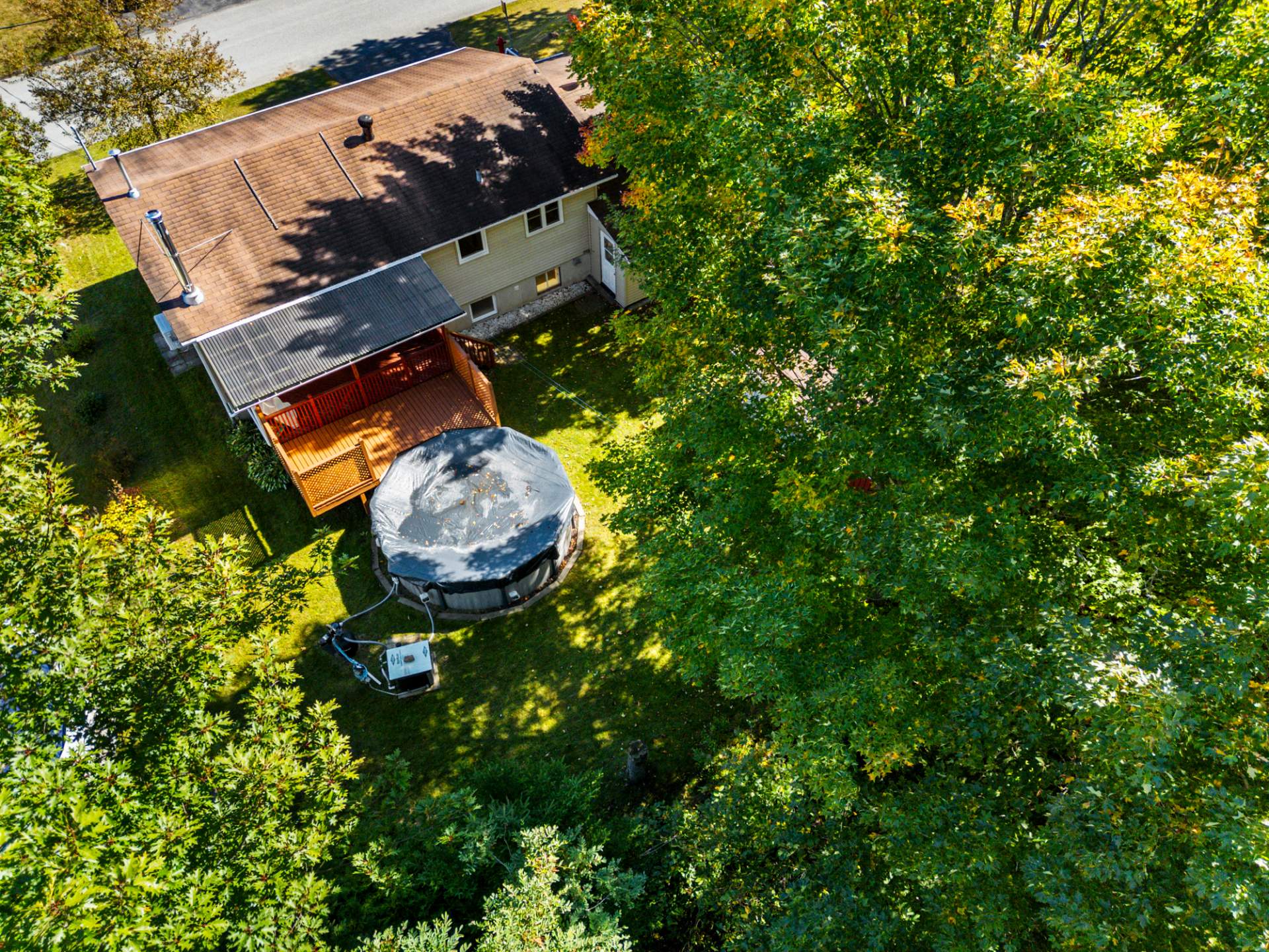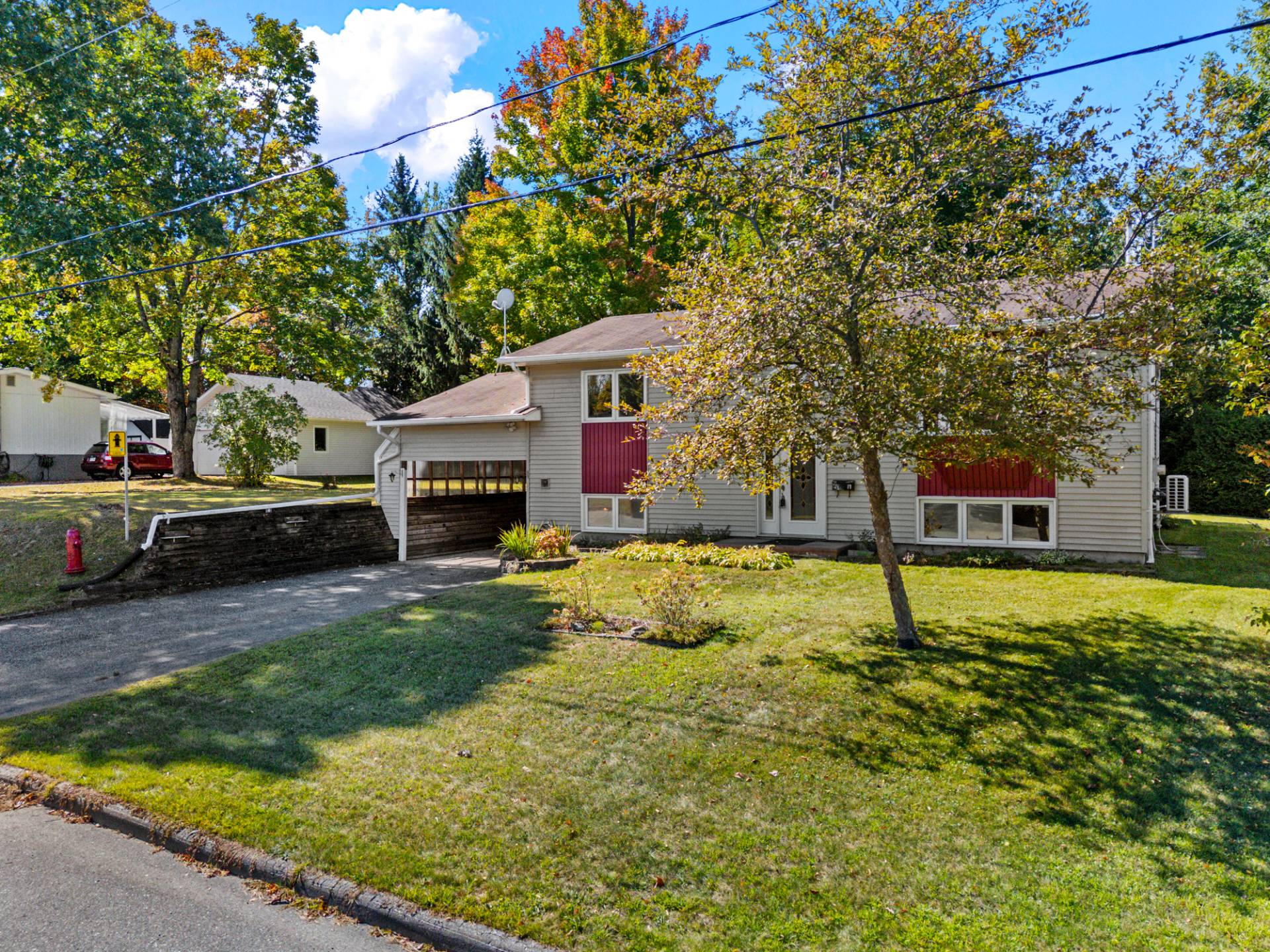 Cette propriété clé en main propose 3 chambres spacieuses et 2 salles de bain, dont une avec bain podium et vanité double. Vous profiterez d'une cuisine chaleureuse aux armoires de bois, d'un salon lumineux avec foyer et d'un sous-sol entièrement aménagé avec salle familiale. Profitez d'un extérieur exceptionnel avec terrasse couverte, piscine et terrain intime entouré d'arbres.