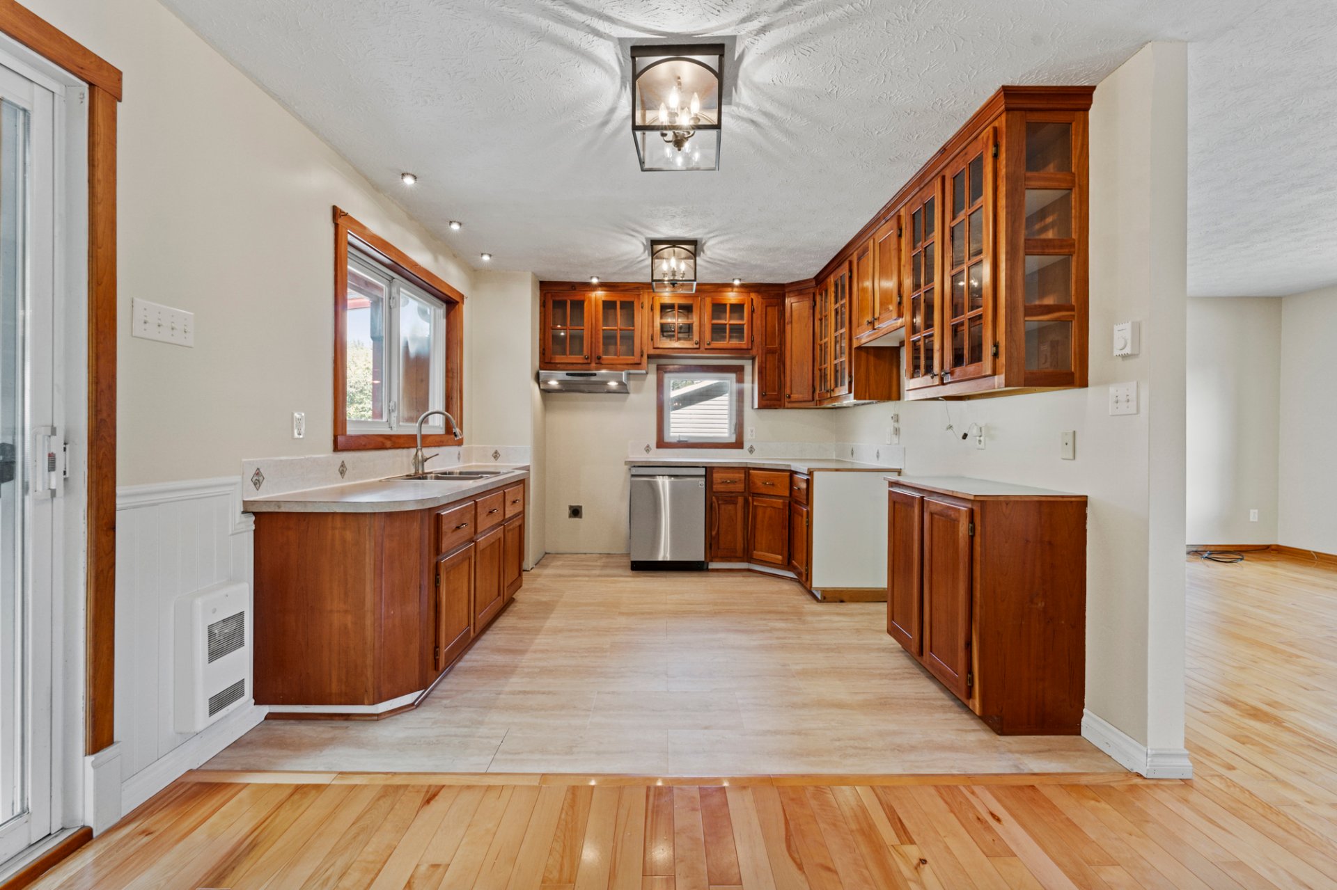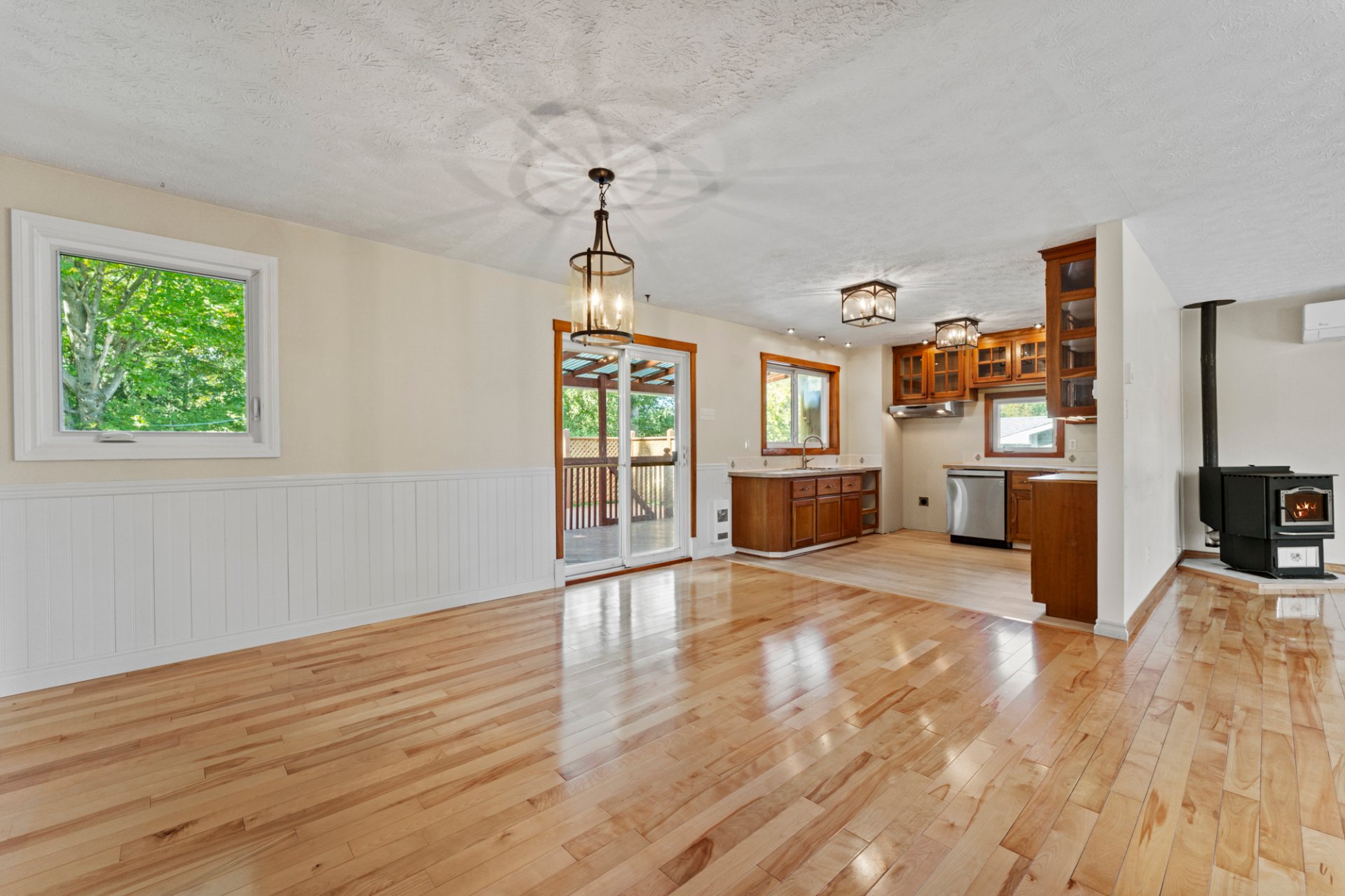 Lave-vaisselle, piscine avec thermopompe et accessoires, luminaires, poêle à bois, thermopompe murale sans conduit, poêle à granules, aspirateur central et accessoires.