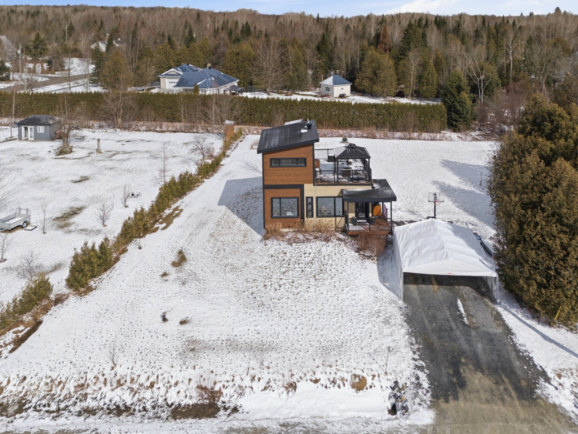 Dès les premiers instants, cette élégante propriété à étage construite en 2016 séduit par son style moderne et son ambiance raffinée. Le concept à aire ouverte, baigné de lumière grâce à une généreuse fenestration, met en valeur un salon accueillant, une salle à manger conviviale et une cuisine élégante avec grand comptoir. À l'étage, la chambre principale offre une salle d'eau attenante et un accès à un vaste balcon. Le sous-sol aménagé propose une salle familiale, 2 chambres et 1 salle de bain. Implantée sur un terrain de 30 582 pi² bordé de haies, cette propriété clé en main combine intimité, espace et confort, à proximité de l'autoroute.