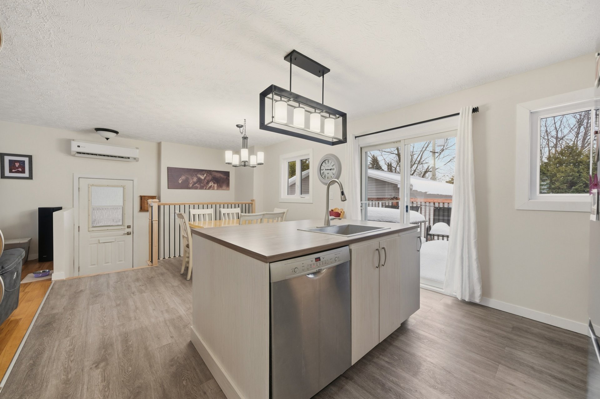 Propriété rénovée située dans un secteur recherché de Fleurimont. Elle offre une aire de vie conviviale regroupant cuisine rénovée avec îlot et accès au patio, salle à manger et salon lumineux. On y retrouve 3 chambres à coucher, 2 salles de bain complètes et une grande salle familiale au sous-sol offrant plusieurs possibilités d'aménagement. Le terrain de 603,9 m² ( 6 500 pi²) propose une cour bordée de haies, une allée double et un garage détaché, idéal pour les projets ou le rangement. À proximité des services, écoles, commerces et axes routiers, cette propriété combine confort, espace et qualité de vie.